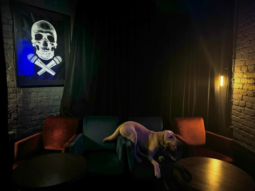 Tym razem Kamil wystąpił w Worku Kości i miał okazję opowiadać o swojej pracy z psami oraz naszym wyjeździe na Trupią Farmę w Texasie w listopadzie 2023 roku. A na zdjęciu możecie zobaczyć jak Racuch do perfekcji opanował technikę łączenia leżenia z siedzeniem.